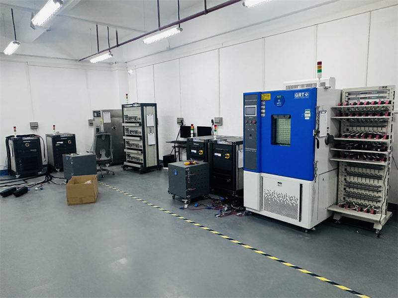本区域主要模拟高低温、快速温变、恒温恒湿等环境工况,用于验证电池在不同气候环境下的稳定性与长期可靠性。配备防爆型快速温变试验箱、充放电测试柜等专业设备,温域宽、控制精度高,满足各类电池环境可靠性测试标准。
