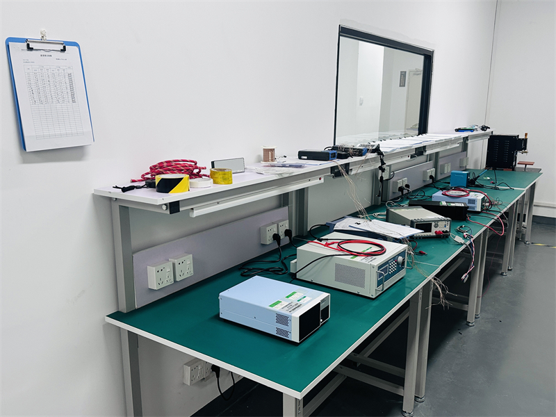 配备高精度电源、电气测量仪器及标准化测试工作台,可完成电池充放电性能、内阻、电压、容量等关键电气参数测试,为产品性能评估与质量判定提供可靠数据支撑。
